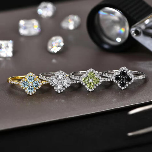 Oakville 4 Leaf Clover Colored Halo Moissanite Ring